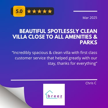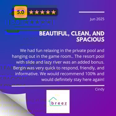 Breez Villas is proudly listed on leading vacation rental platforms including Airbnb, Vrbo, Expedia, Hopper, Google Vacation Rentals, and our official website, BreezVillas.com. Choose the platform you trust most.